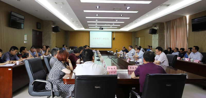5月24日下午,学校召开领导干部会议,传达学习习近平总书记视察江西期间的重要讲话精神和全省领导干部会议精神,在家校领导陈亮、叶军明、肖树辉、彭维杰出席。全校正副处级干部参加会议。学校党委委员、副校长陈亮主持会议。