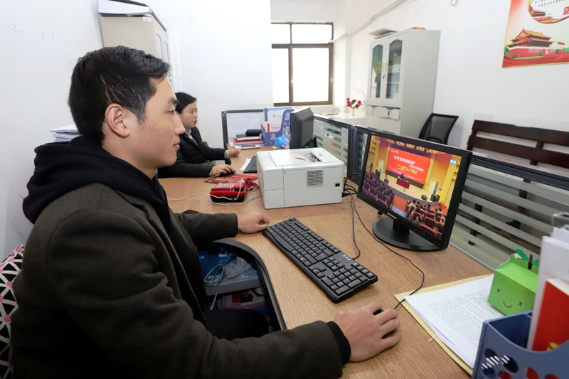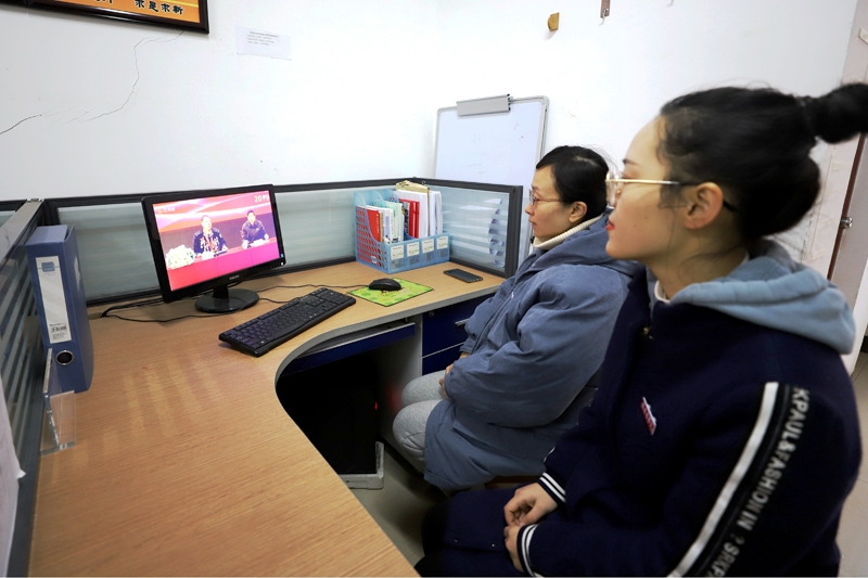 我校广大师生在大学生党员活动室、教室、办公室等场所,积极登录中国江西网直播页面、江西头条手机客户端等网络媒体平台收看报告会实况。